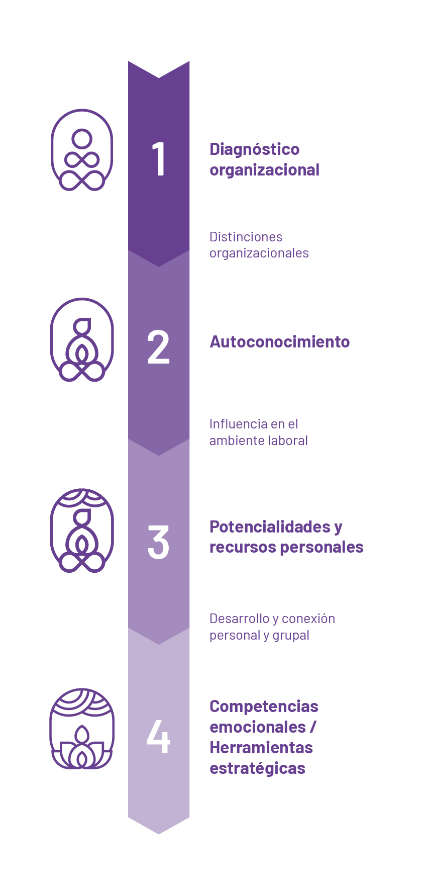 Desarrollamos competencias emocionales y herramientas estratégicas, que permitan a las personas trabajar y habitar los espacios organizacionales de una forma más armónica y alineados con su propio ser.